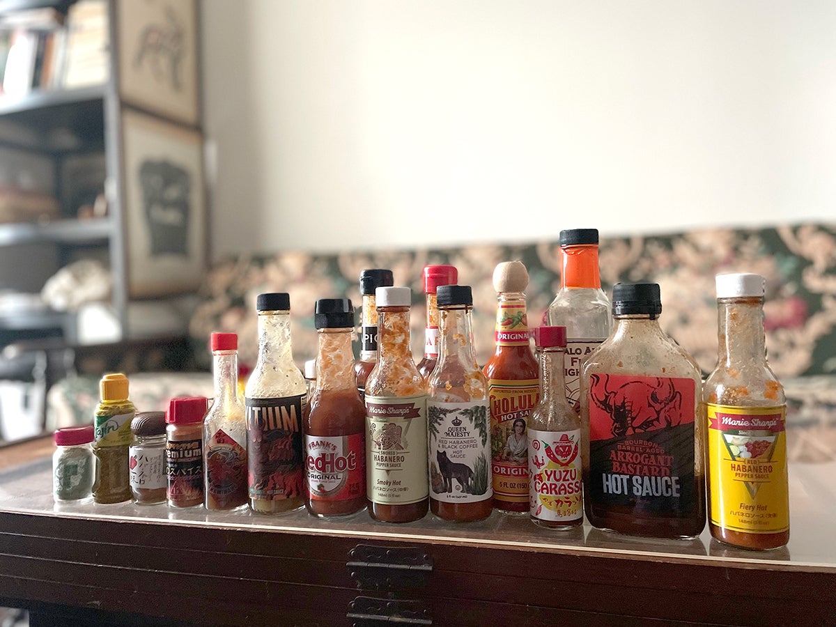 集めたホットソースやスパイスの一部