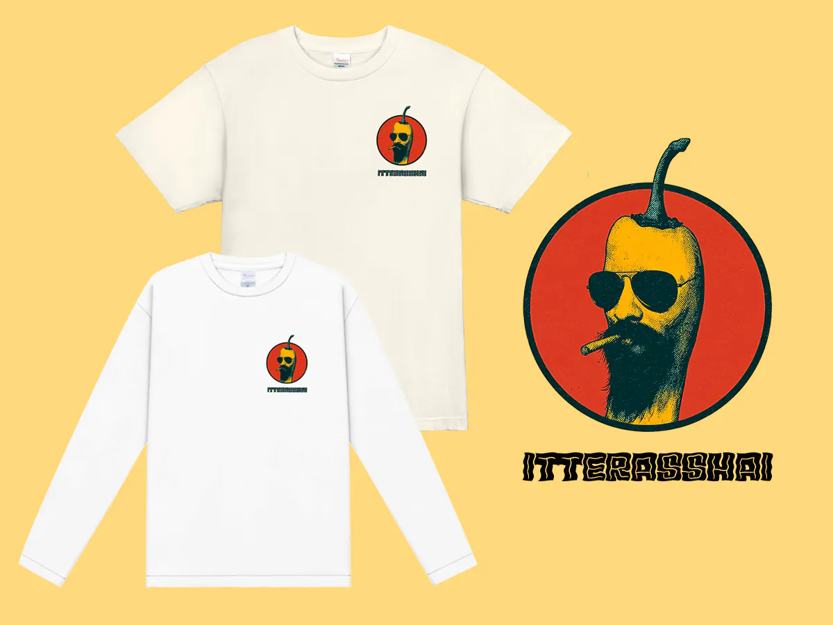 二二二でみんなを送り出す時に言っていた「いってらっしゃい!」を込めたデザインです。その名も、「いってらっしゃいTシャツ」!