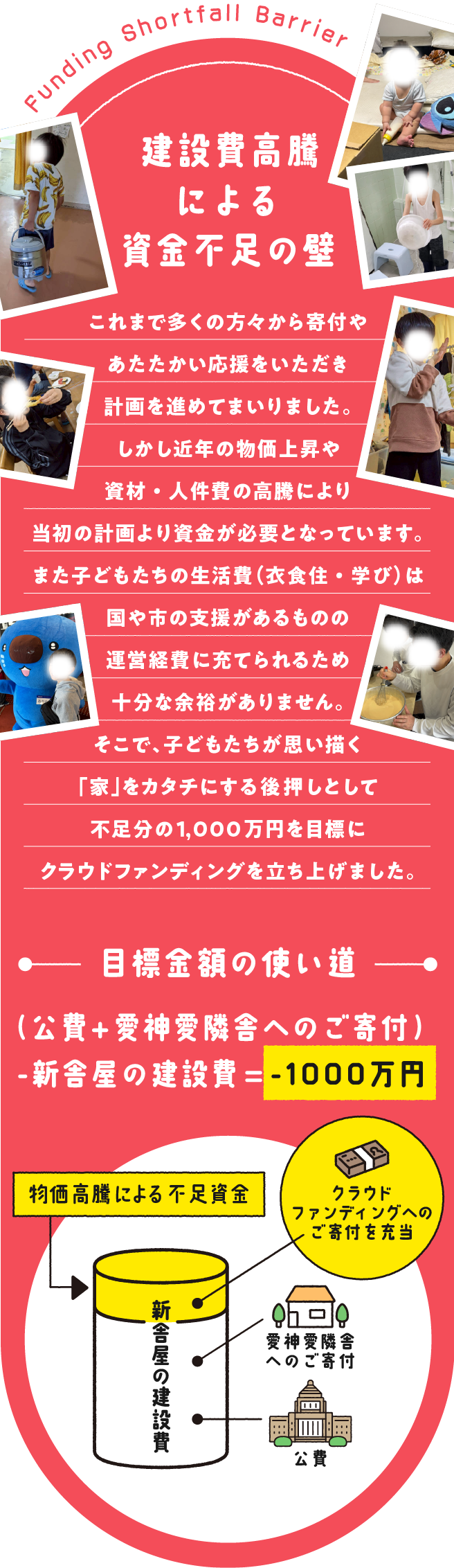2026/02/18 15:432025年12月13日に始めた愛神愛隣舎の新舎屋建て替えクラファンは、おかげさまで130名の方から648万4195円のご支援をいただき、昨夜2026年2月15日23:59に無事終了いたしました。ご支援くださったみなさま周知にご協力くださったみなさま、あたたかなメッセージをくださったみなさま、建て替えを「さみしい」と言いながらも「楽しみ」とも言ってくれた卒園生や現在、園で暮らしている子どもたちに心より感謝申し上げます。 もっと見る