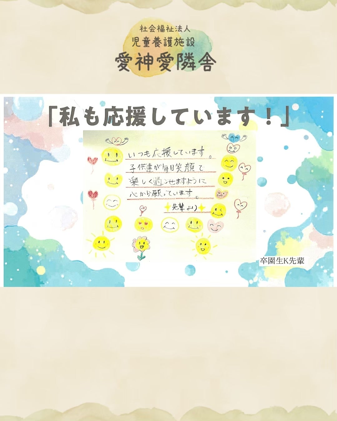 卒園生のK先輩から応援メッセージをいただきました