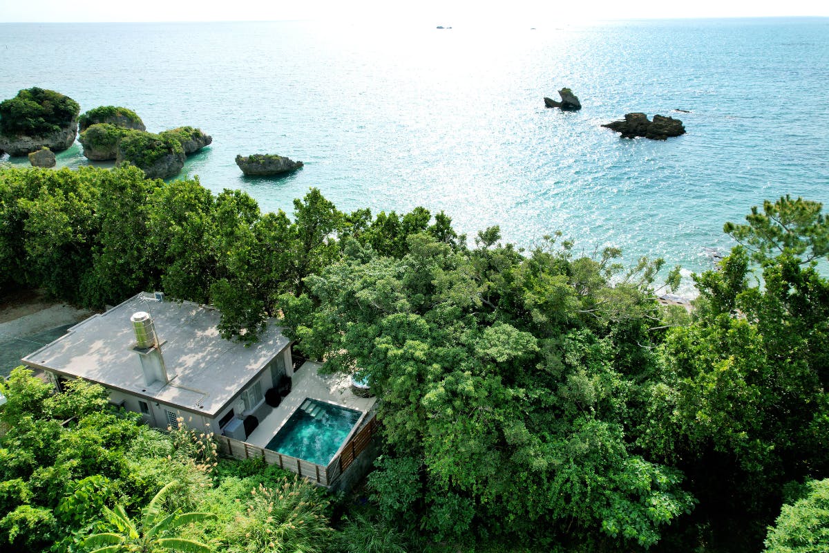 目の前に広がる碧い海と空を独占する、プール・ジャグジー完備の一棟貸し宿です。