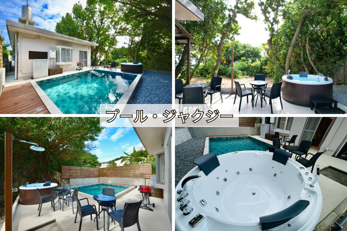 敷地内には開放感あふれるプールとジャグジーを備え、昼は南国の陽光を浴び、夜は星空を眺めながら極上のリラックスタイムをお楽しみいただけます。