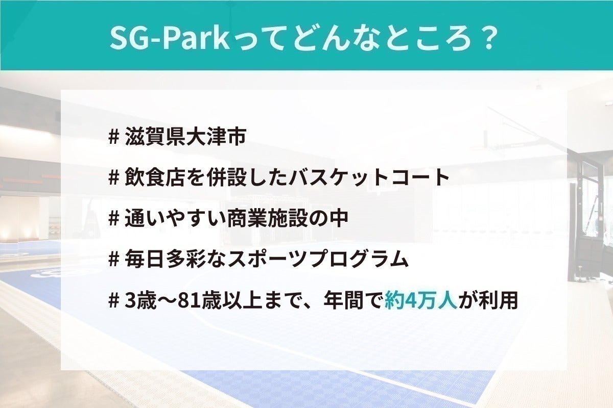 滋賀県大津市で、飲食店を併設したバスケットコート「SG-Park(エスジーパーク)」を運営している株式会社Seventh Generations Projectの牧 貴士(まき たかし)です。