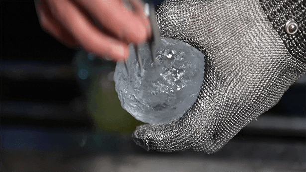 完璧な透明氷を作るには、最先端の技術に加え、氷がゆっくり成長する時間が不可欠です。