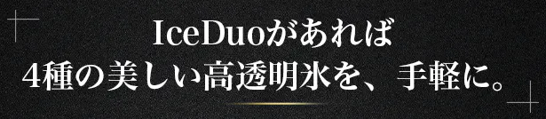 開発を進める中で、私たちは氷が持つ「楽しさ」と「美しさ」に改めて気づきました。従来の家庭用製氷機では作りにくい透明でクリアな氷を作るための技術に挑戦し、多くの試行錯誤を繰り返しました。特に、氷の透明度と形状の多様性を両立させることが大きな課題でしたが、「ご家庭で手軽に特別感を楽しんでほしい」という思いが私たちを支えました。IceDuoはその結晶です。飲み物の美味しさを引き立てる特別な氷を、ぜひ体験してみてください!