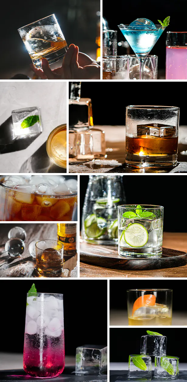 球体、立方体、ダイヤモンド、ロングの4つの形状は、どれもクリスタルのように透き通っており、見た目も美しく、ドリンクの魅力を引き立てます。