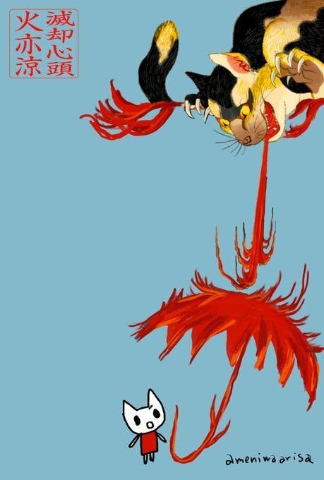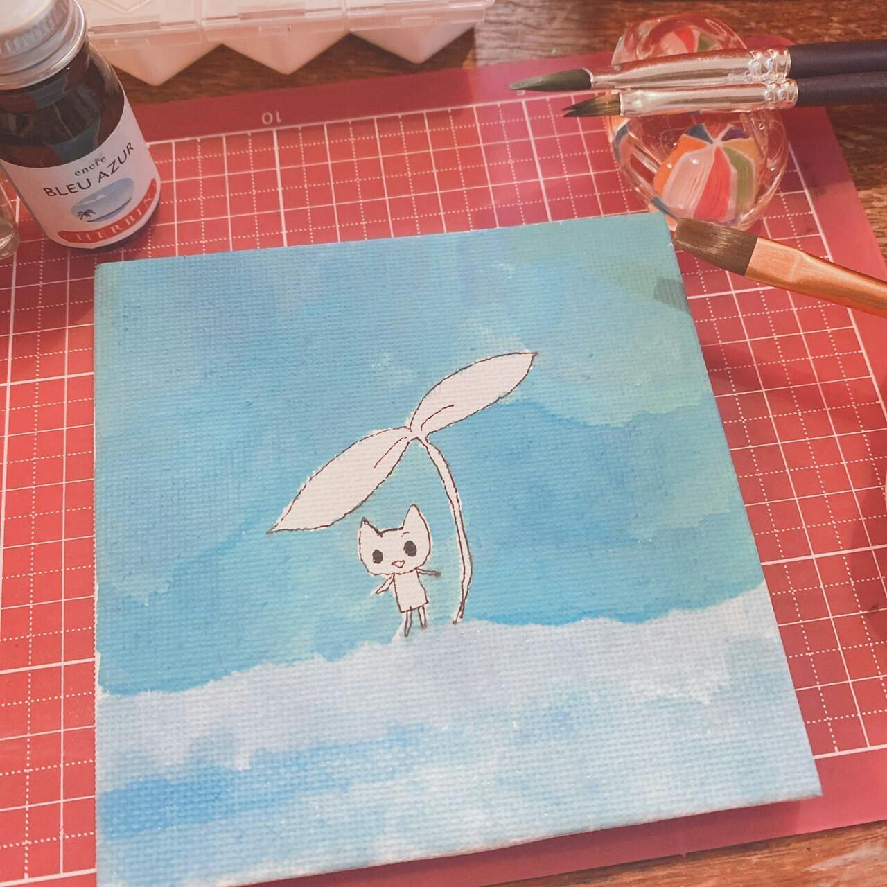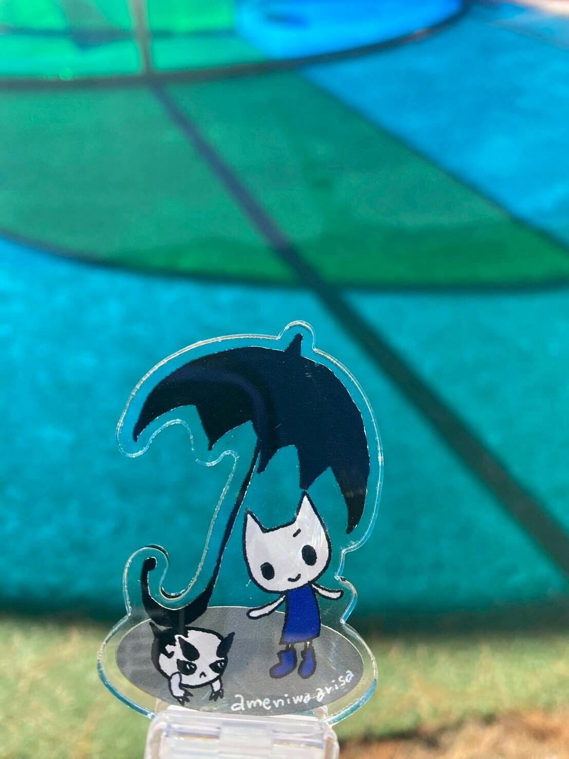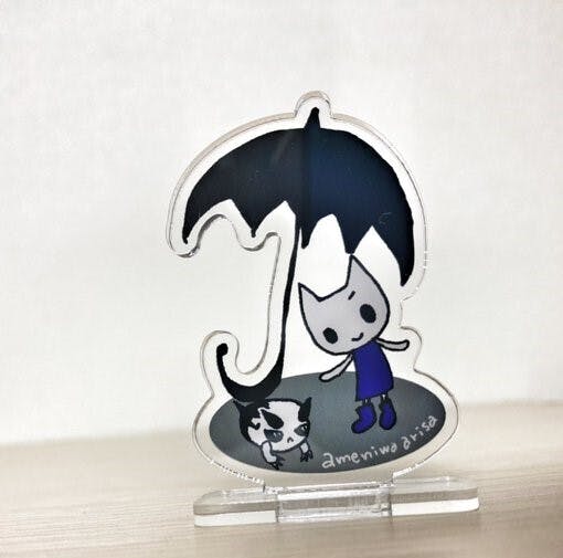 ▼雨の降る日に現れる妖怪「すねこすり」とありねこちゃんのアクリルスタンドです。この作品が日本中、世界中を旅しています!