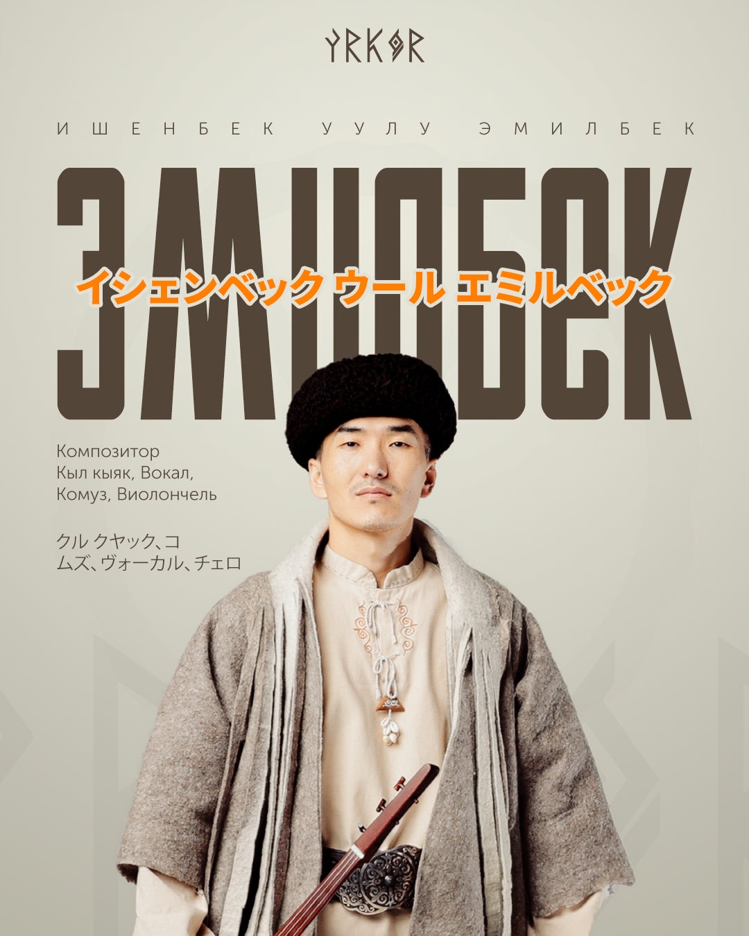 2024年にはキルギス共和国「文化優秀者」を受賞し、大きな注目を集めました。これまでに20カ国以上で公演を行ってきた、キルギス音楽界が世界に誇るトップランナーの一人です。