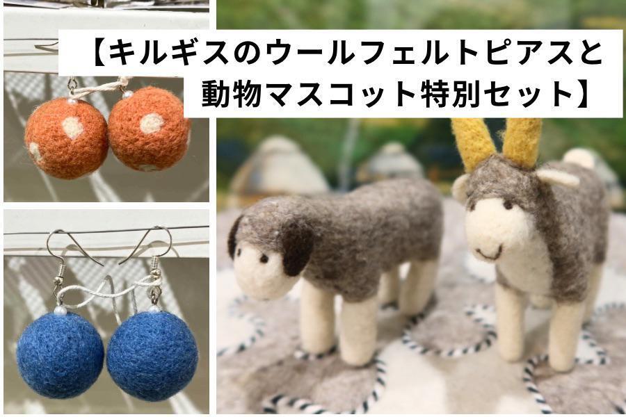 「キルギスの手仕事を日常にも取り入れたい」という方のために、アニマル1種(羊またはアルガリ)と、フェルト製ピアスのセットをご用意しました。
