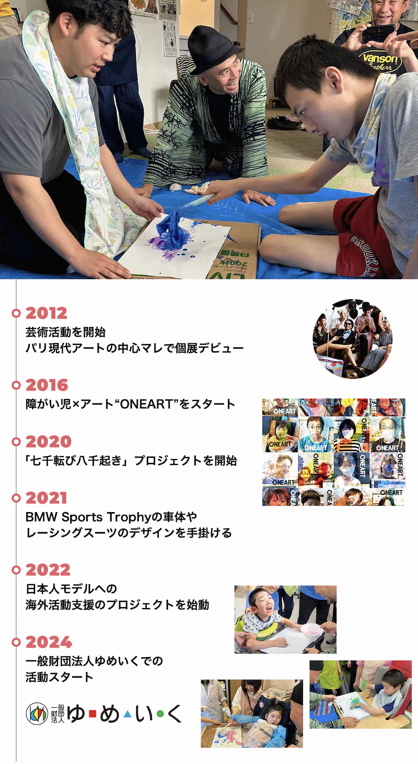 パリで個展デビュー後、知的障がい児の才能を発掘する「ONEART(ワンアート)」を設立し、
