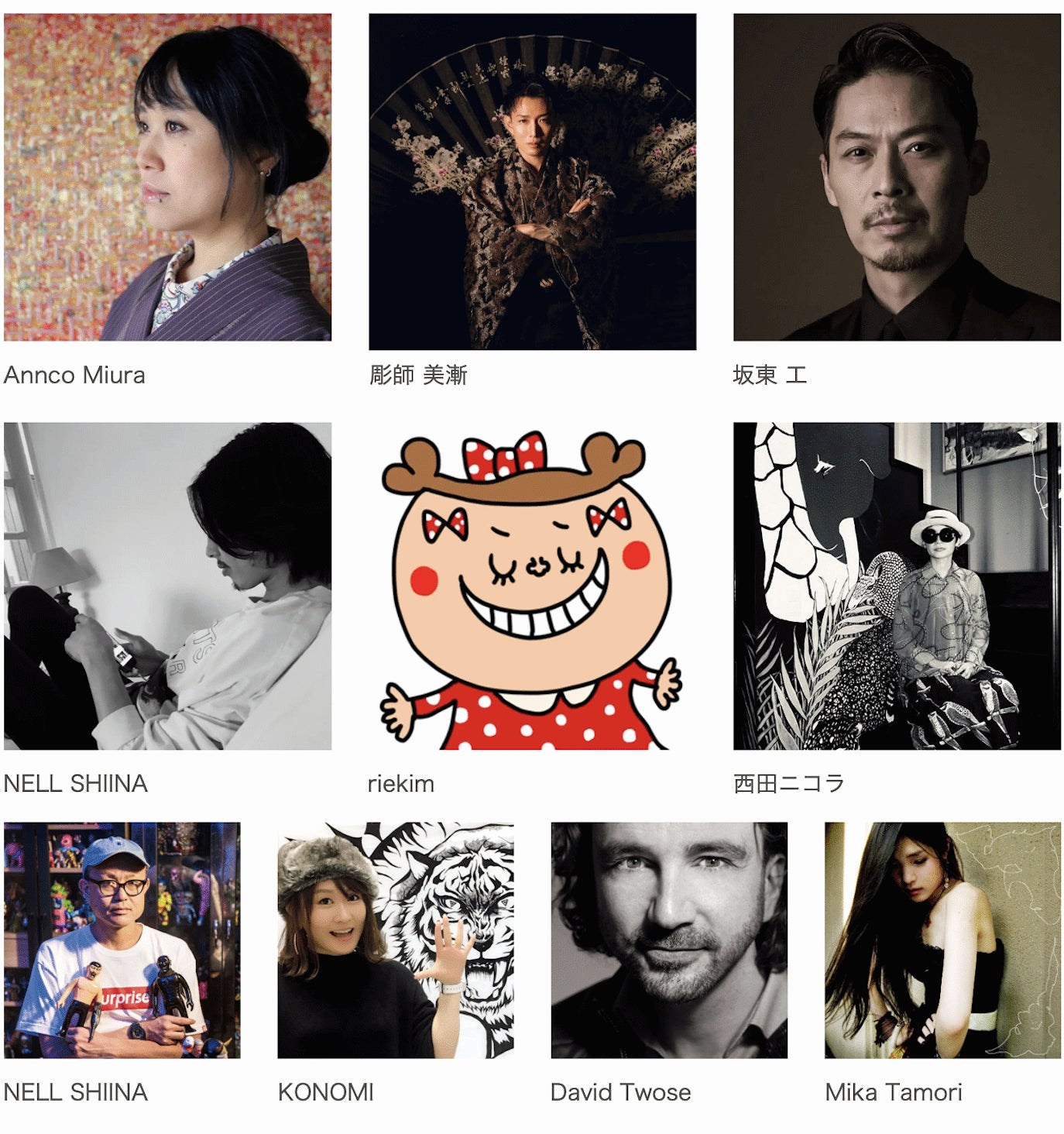 Annco Miura / 彫師 美瀬 / 坂東 工 / NELL SHIINA / riekim / 西田ニコラ / OYAKATA / KONOMI /David Twose / Mika Tamori / 震楽箱 / Junpei Hagihara / Eve TESORIO / Gabriel Fernandes / 森田 絹子 /柴田 人蜜 / 江原 由佳理 / SOTARO / 稲垣 晴子 / Yasu LEE LOW / 飛太 -AlmeriA- / katekin / Rin /Yumi Kamiya / Chiki / David Twose / Namiko Miyaki / Eri Yamauchi / Kyou. / みやしょう / 太陽と牛