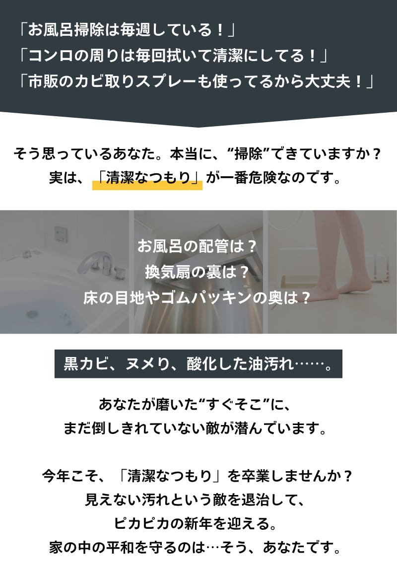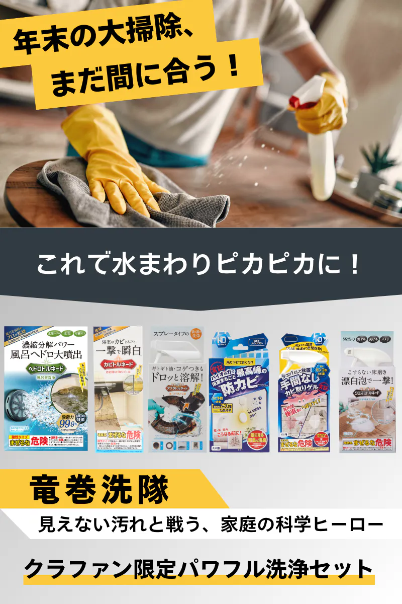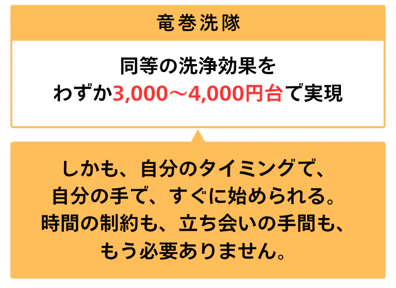 今なら、まだ間に合います。年末の忙しい時期でも、竜巻洗隊があればすぐに始められる。こすらず、頼まず、科学に任せるだけ。あなたの家を守るヒーローたちが、もうスタンバイしています。