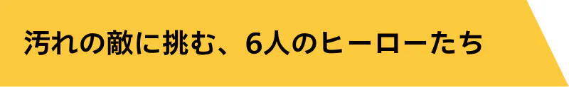 6人の科学ヒーローが、それぞれの専門分野で汚れに立ち向かい、家のすみずみまで「本当の清潔」を取り戻します。