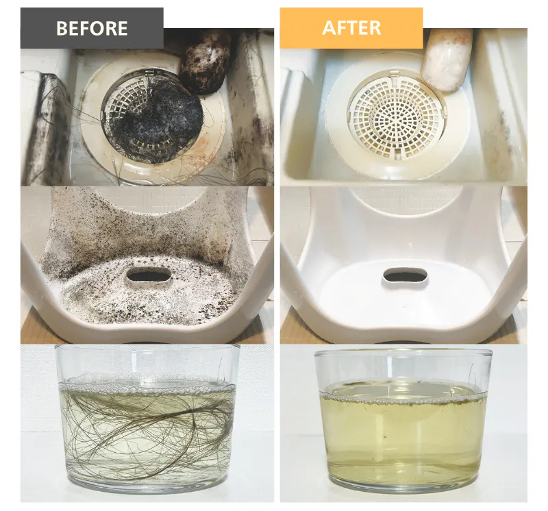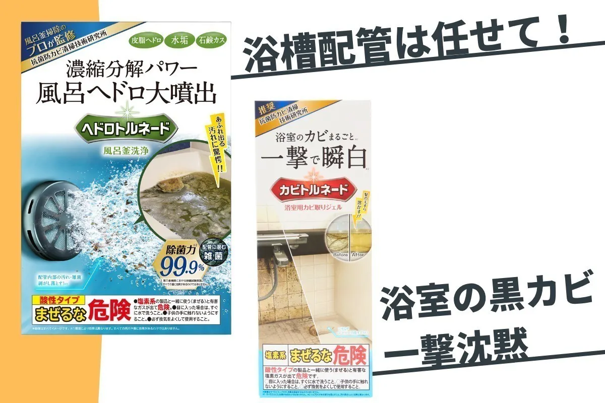 A. はい。各製品はプロの清掃技術を家庭用に最適化しており、化学反応や泡・ジェルの密着力で汚れを分解します。特に「ヘドロトルネード」は酸性とアルカリ性の二剤式反応で、“こすらず”ヘドロや雑菌を浮かせて除去します。