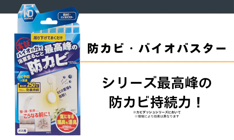 特許技術TM-I-3株という生きたバイオが、菌や臭いを“非接触”で抑制します。吊るすだけで、最大250日も防カビ・防臭効果が持続。薬剤を使わない、人にもペットにもやさしいヒーローです。