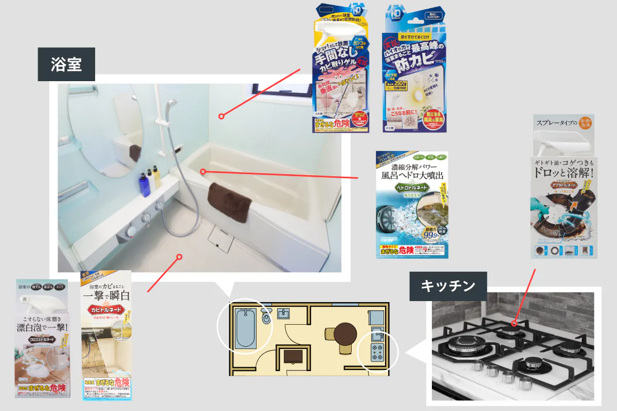 A. 一般的には、風呂釜:2〜3ヶ月に1回、浴室カビ取り:1ヶ月に1回程度、床・キッチン:汚れが気になるタイミングでOKを推奨しています。定期使用でカビ・雑菌の再発を防ぎます。