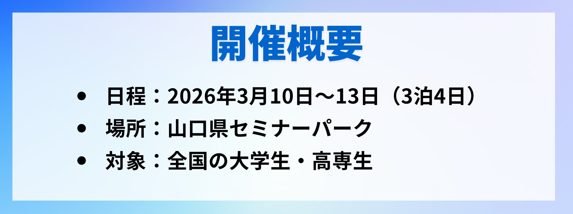 私たちは来年3月、山口県にて、これまでで最大規模の合宿イベントを開催します。