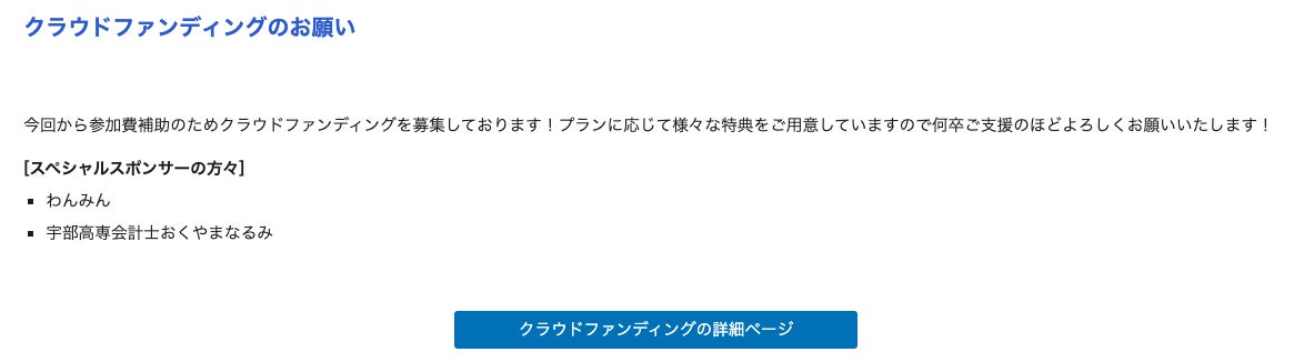 クラウドファンディングでの支援金は、その全額をこれらの費用の補助に充てます。