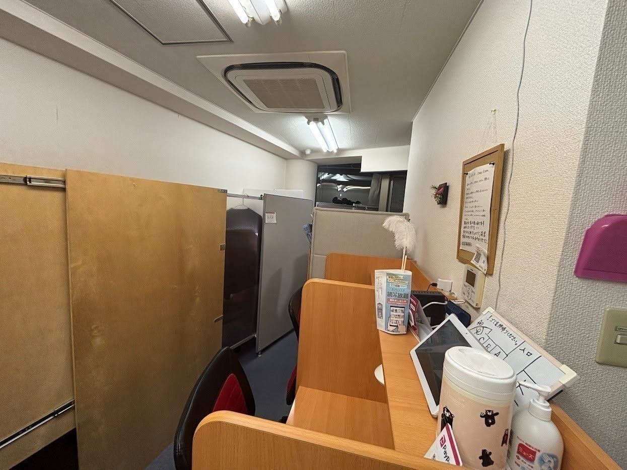 その1:設置されている木材のパーテーションを撤去。席数を精選し、ゆとりのある個室配置を再度行う。