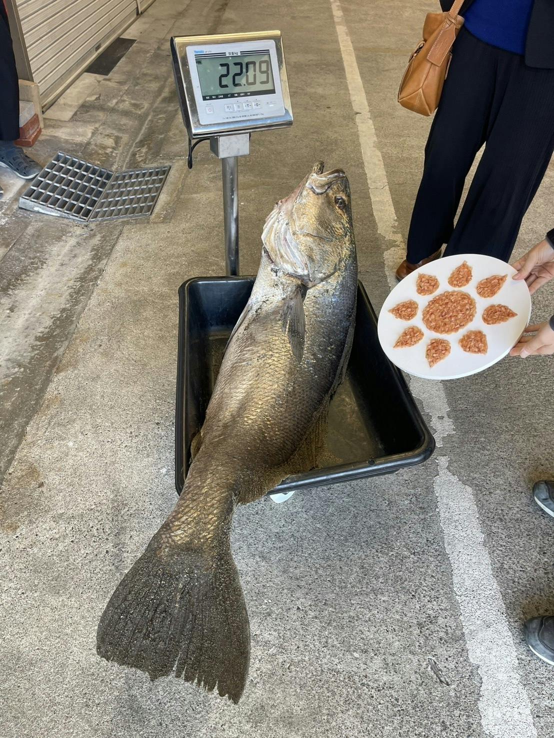 2025/12/21 16:31こんにちは!株式会社mahanaの富川です。先日の活動報告にて、宮崎で開催されたオオニベ釣り大会でひな天を協賛したことについて投稿しましたが、なんとその後嬉しいご縁が繋がっております。大会で出会った方(Aさん)が、後日釣りに行かれた際大物のオオニベを釣り上げ、デッド(死んで)しまった魚体の処分に困っているとご連絡をいただき、弊社に持ち込んでくださいました!弊社としてはオオニベはいつでも欲しいお魚!釣り人としては、釣ることが目的であり、持ち帰って捌いて食べるにはかなりハードルの高い、大きすぎるお魚。生きていればリリース出来ますが、デッドになってしまった際の処分に困る方は多いようです。届けてくださったオオニベなんと141cm、20kg超!皆興奮し、ニベを囲んでお話をしていたところ、今度は先日ひな天を召し上がっていただいたお客様(Bさん)がご自身で釣ったニベの鱗で弊社のロゴを作ってプレゼントして下さいました!!!鱗は玉ねぎの皮で染められたとのことで、食材を余すことなく使いたい&アップサイクルに重きを置いている弊社にとって、こんなに嬉しいプレゼントはありません。何よりお気持ちが嬉しくて、さらにクオリティの高さにも驚いて、とにかく感謝の気持ちでいっぱいです。今回Aさんが届けてくださったオオニベは鱗もとても大きく、Bさんがこの大きな鱗で何か作りたいとコップいっぱいの鱗をウキウキで持って帰られました♩なんて素敵な循環でしょう。未利用魚であるオオニベを、ひな天として活用し始めて1年。ニベを通して素敵なご縁が広がって感慨深いです。捨てるところのないニベ。浮袋は中国の珍味であるユイトウに、胃袋はチャンジャに。骨や皮はコラーゲンたっぷりのお出汁をとったり、乾燥粉末にしてペットのおやつにしたり。着実に廃棄に回す部分が減ってきていると強く実感する最近です。今後とも余すところなく活用していけるよう、日々模索し続けます!富川 もっと見る