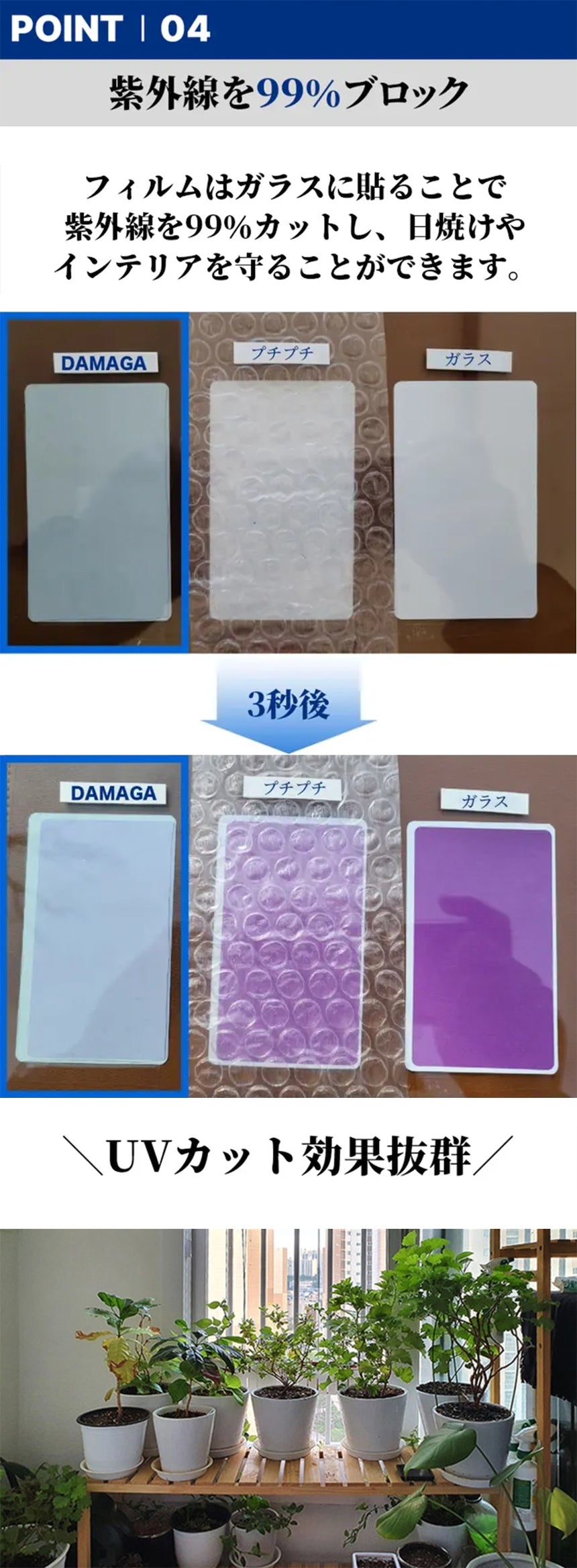 A: 3年以内の使用における、紫外線による商品の劣化において無償交換いたします。上記以外による理由においては、すでに商品を窓に貼ったことのある場合は原則として保証はございません。ご購入直後の商品に不具合がある場合は、弊社までご連絡をお願いいたします。無償交換対応をいたします。