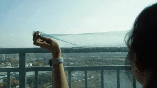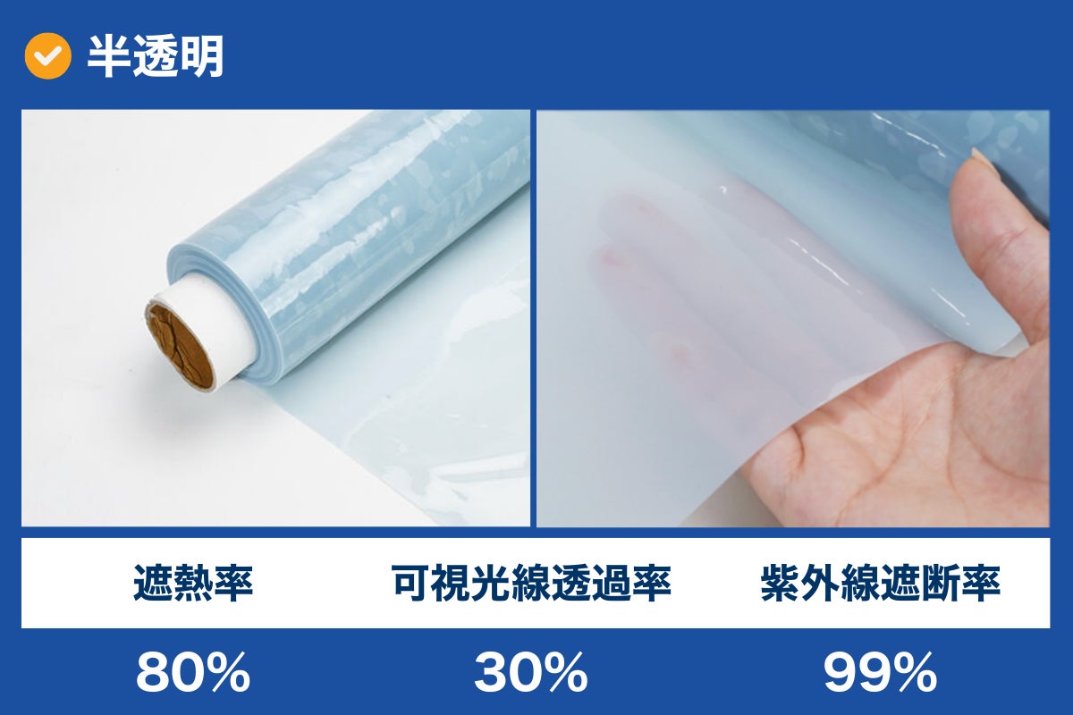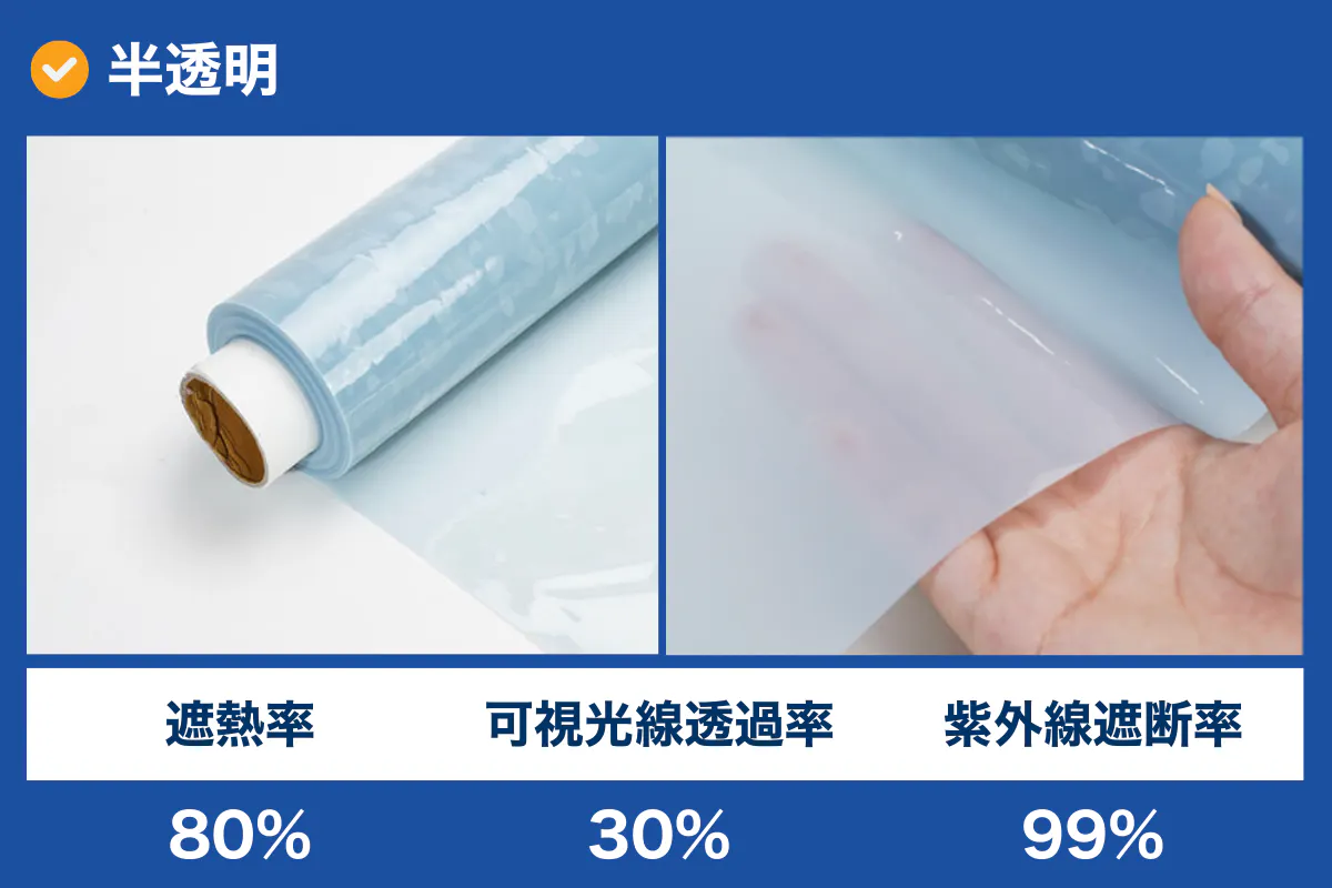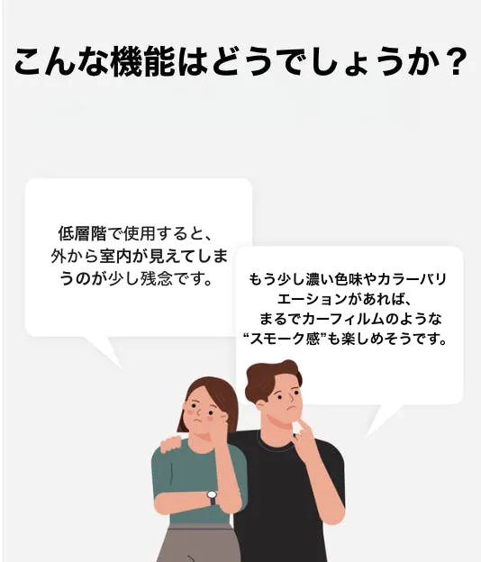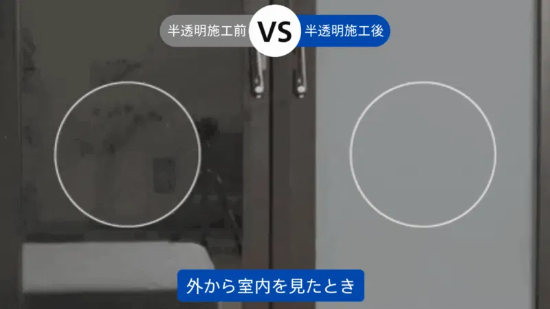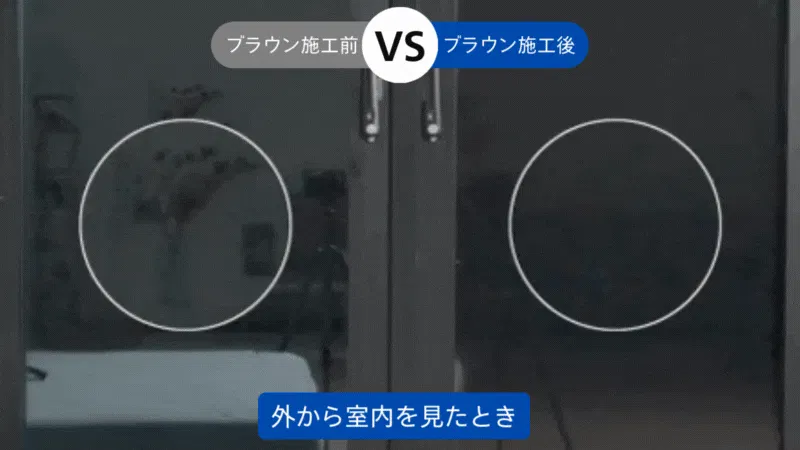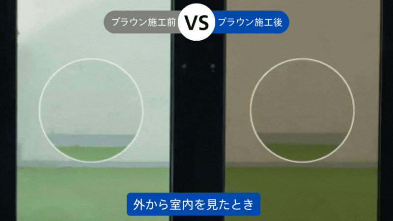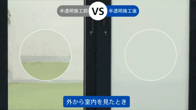 A: 商品は透明です(可視光線透過率約75%)。外からも内側からも見えます。