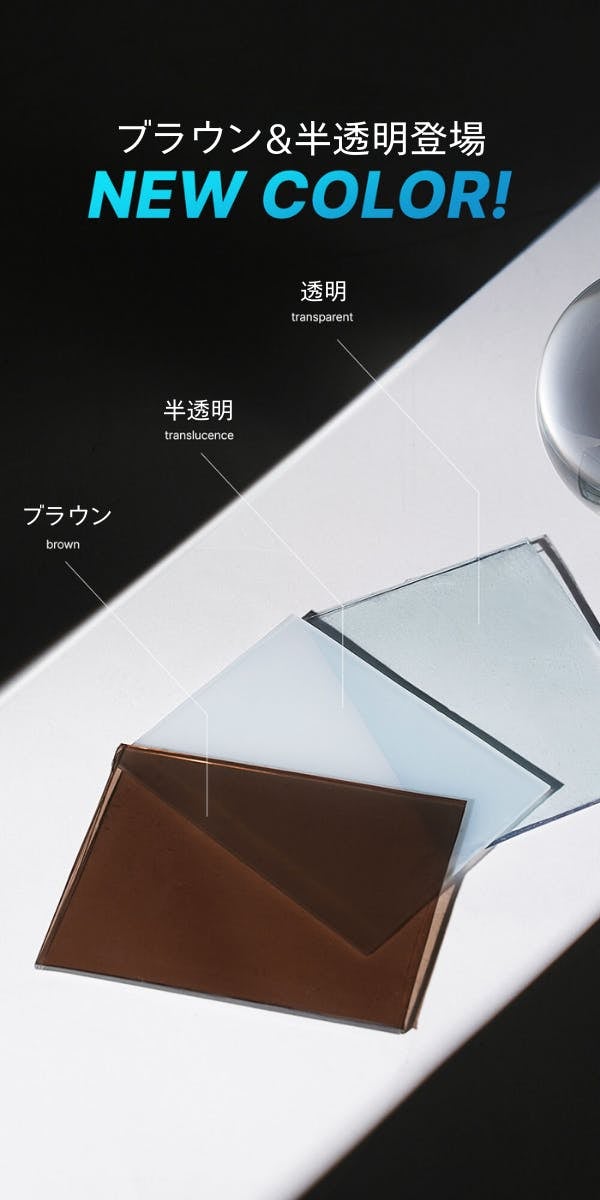 今回のクラウドファンディングはプライバシー保護タイプの「ブラウン」「半透明」バージョンとなります。