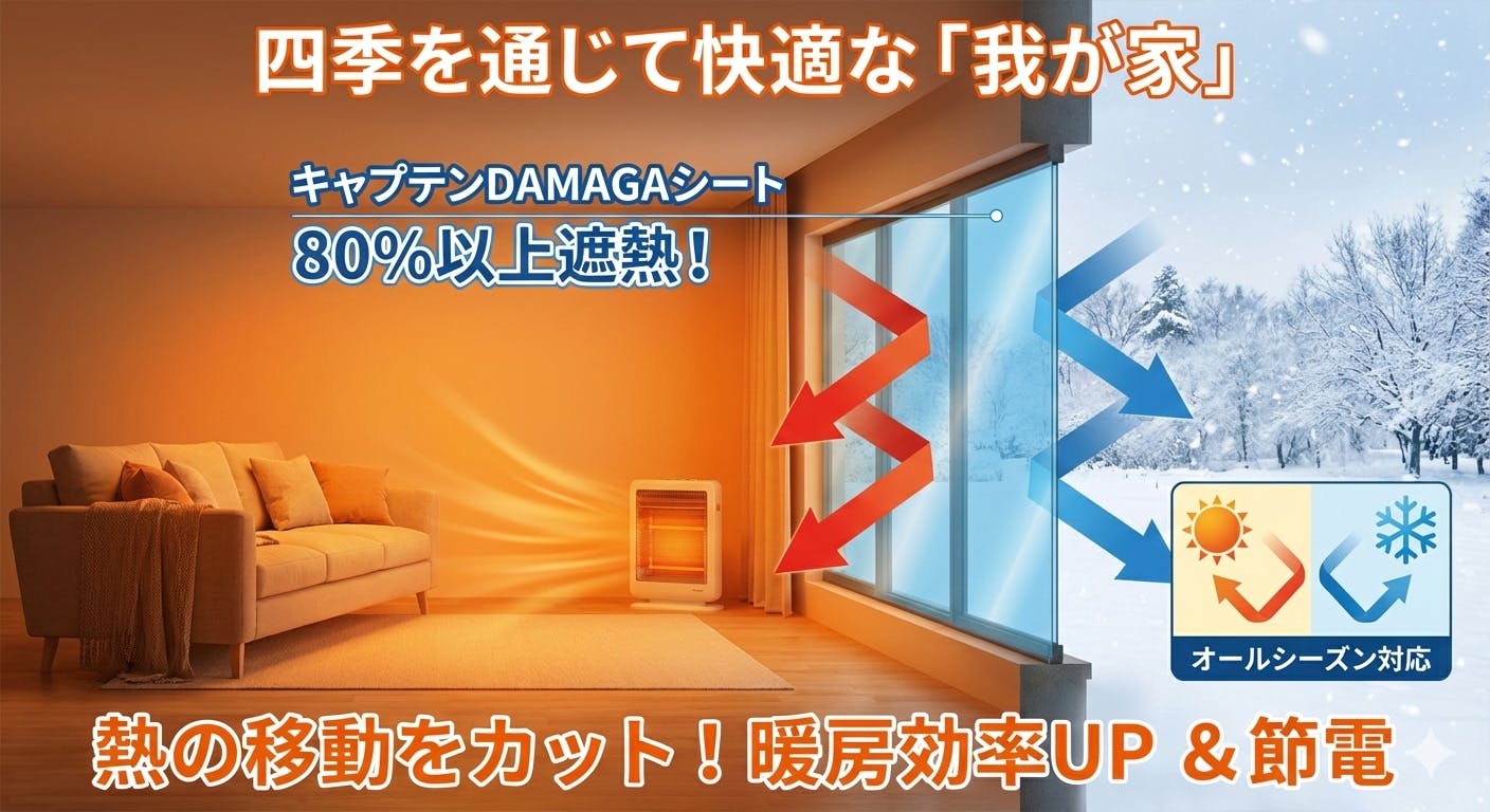 キャプテンDAMAGAシートは80%以上の優れた遮熱効果を実現し、外の冷気を遮断して室温をしっかりキープします.