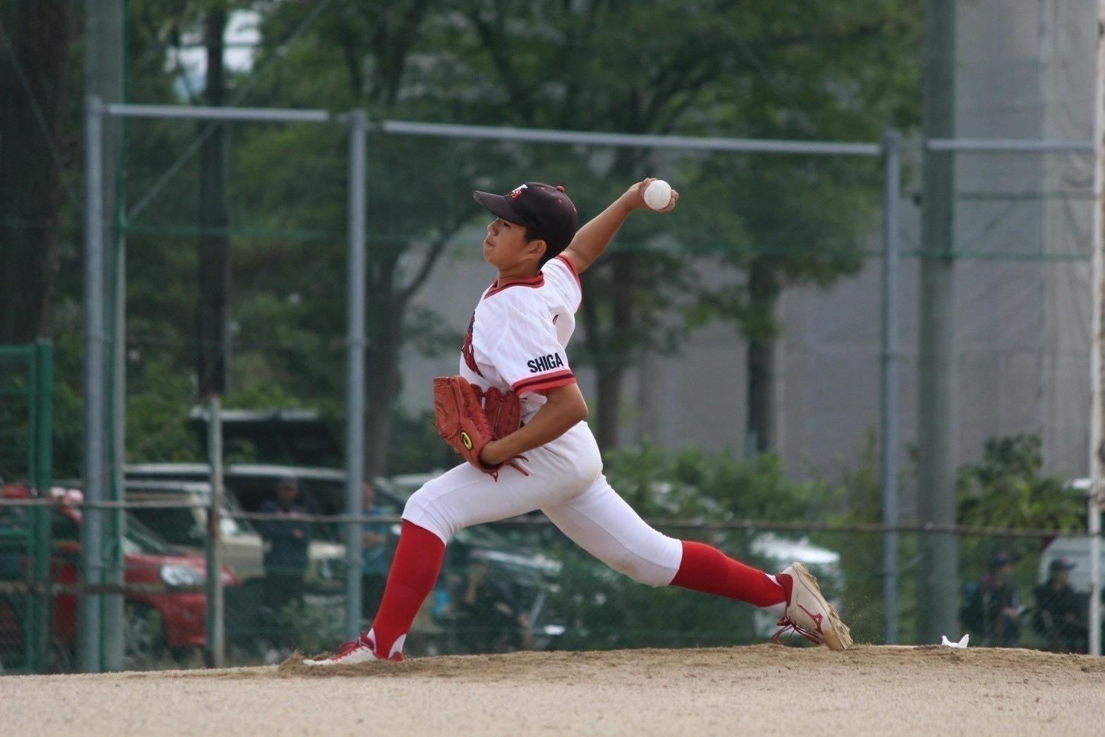 今年の8月に開催された第55回中部日本地区選抜中学軟式野球大会(愛知県蒲郡市、蒲郡球 場)に、滋賀県代表として初めて出場権を獲得しました。当大会は、中部地区の県代表10チームが出場する大会。結果は、初戦 敗退でしましたが、初めての県代表として大会に出場。