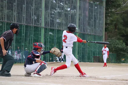 私たちのチームは、学年間の上下関係はほとんどなく、問題解決にお互いで話し合って進めます。また、監督・コーチから の指導だけでなく、上級生が下級生に対し、チームプレーの必要性を指導 しながら、チーム一丸となって技術の向上に努めている光景もよく見かけます。強いチームを作ることだけが目標でなく、人としての人格形成に野球は最適だと考えています。
