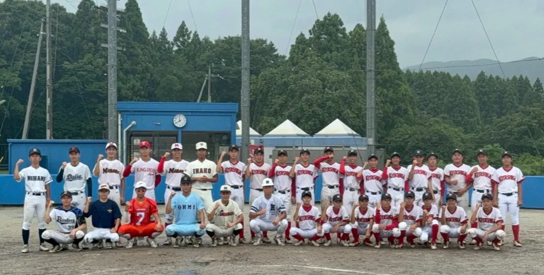 今年の8月に開催された第55回中部日本地区選抜中学軟式野球大会(愛知県蒲郡市、蒲郡球 場)に、滋賀県代表として初めて出場権を獲得しました。当大会は、中部地区の県代表10チームが出場する大会。結果は、初戦 敗退でしましたが、初めての県代表として大会に出場。