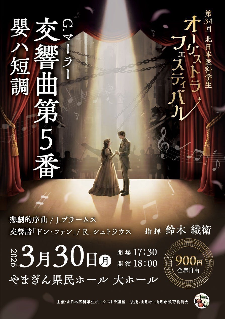 北日本医科学生オーケストラフェスティバル、通称「北オケ」は、1992年の創設以来、東北・北海道を中心に、全国で医学を志す学生たちを音楽でつないできた文化活動です。多忙な学業と向き合いながらも音楽への情熱を絶やさない学生にとって、本フェスティバルは精神的な豊かさと成長をもたらす貴重な場であり、今年で第34回を迎える伝統は今もなお息づいています。