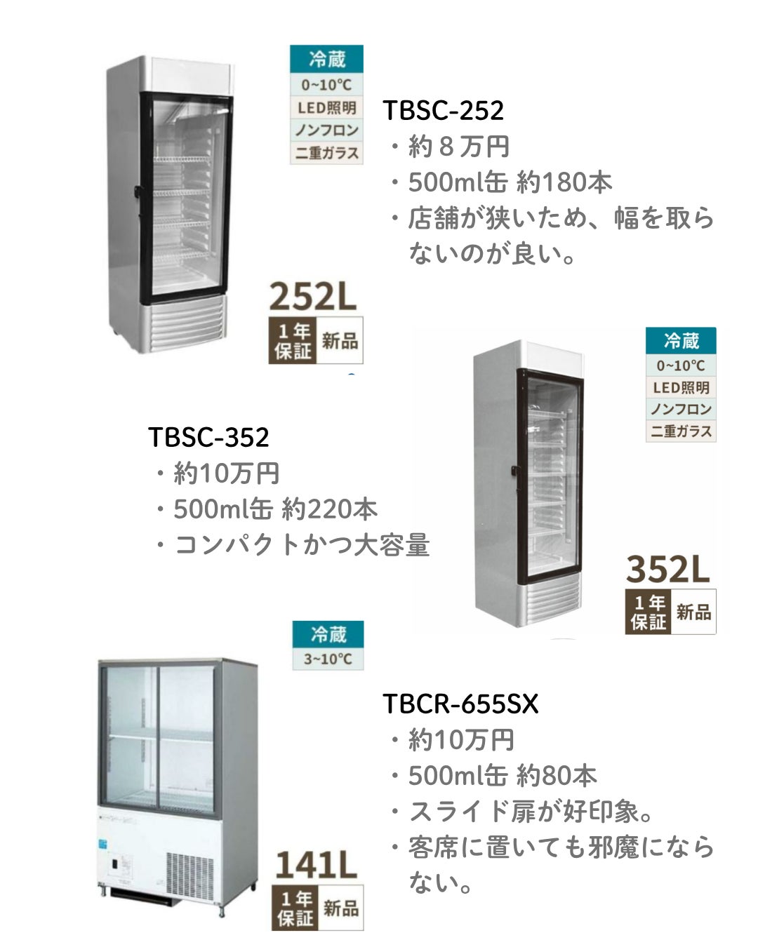 →小型冷蔵庫 TBSC-252(約8万円)で開業(下図参照)