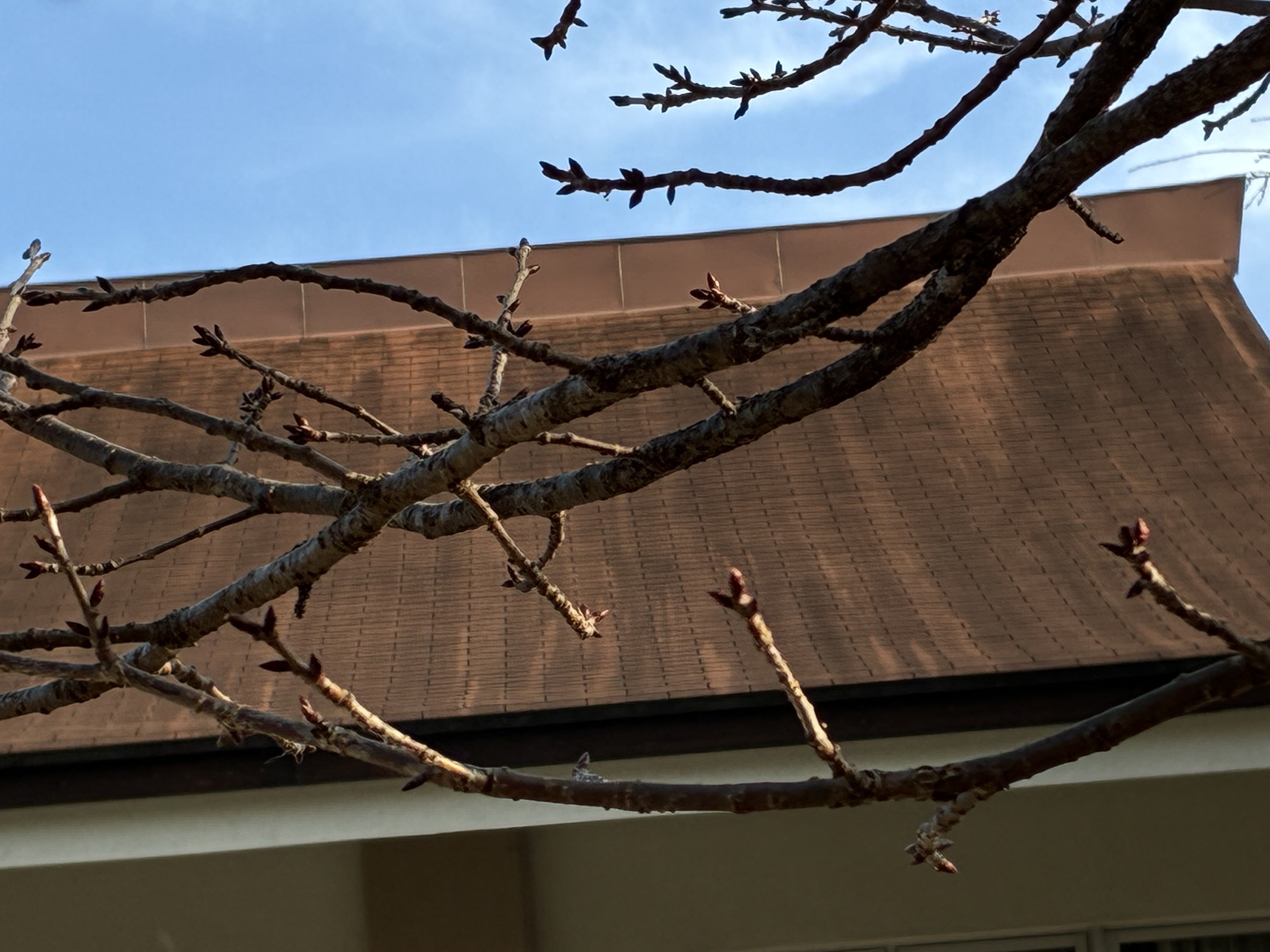 桜の枝先を見ると、固く閉じていた蕾が、ほんのわずかに膨らみ始めているのが分かります。