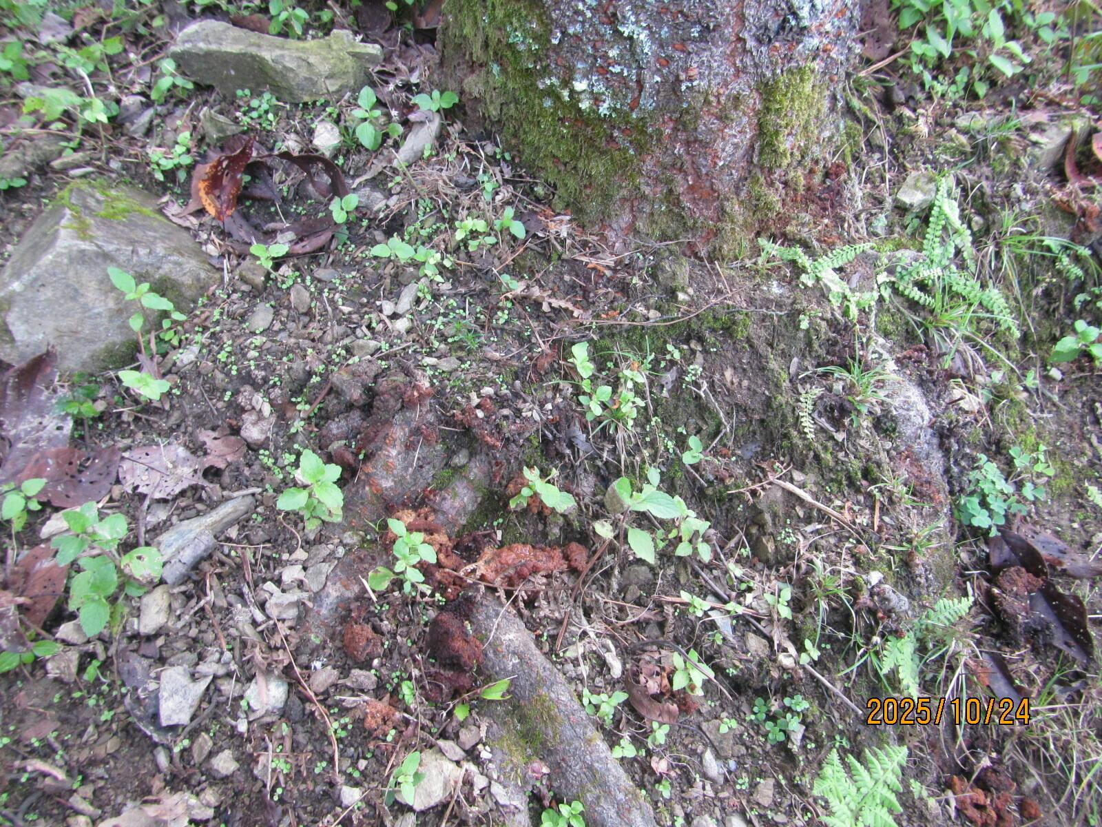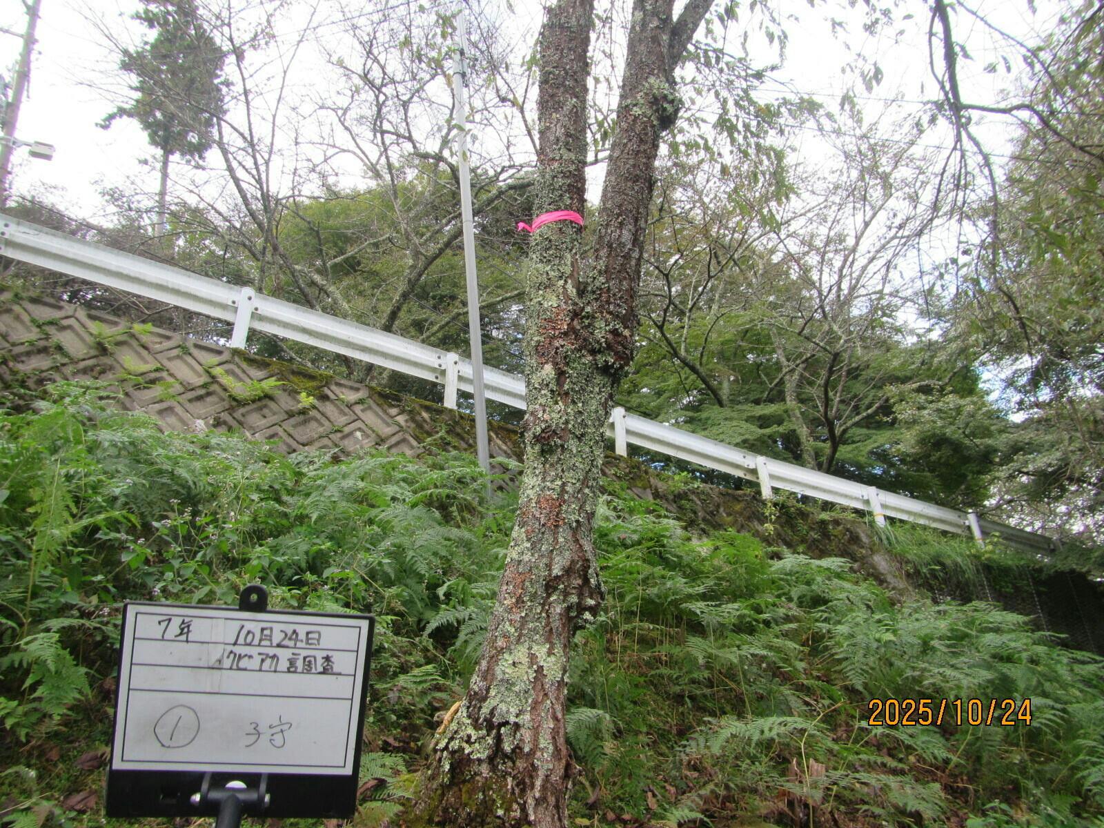 しかし、2025年10月最初に発見された場所は上千本エリアトイレ横の桜だったのです。写真のピンクのテープの桜です