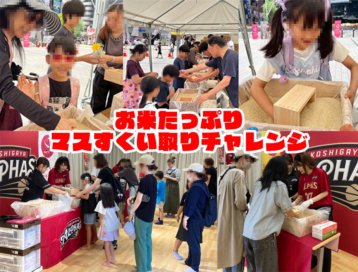 昨年来、お米の高騰が続き、備蓄米の販売が始まったものの、まだまだ安定せず過去の水準には戻りません。特に食べ盛りのお子様がいるご家庭に、大きな影響を及ぼしています。そこで、子育て支援として、お米のマスすくい取りイベントを6月と9月に開催し、一升枡に目一杯すくったお米をプレゼントしました。