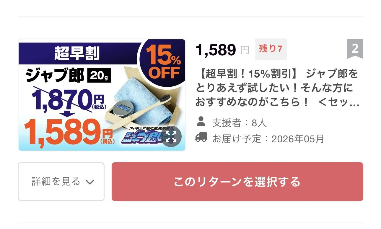 2026/03/20 16:58みなさん、こんにちは!今日は春分、新しいことにチャレンジするといいそうです。ってことは【ジャブ郎】支援に最も向いている日と言っても過言ではないでしょう(笑)あー、ちょっと今忙しいけん、後でポチッとするわーって思った貴方、急いだほうがいいかもしれません15%オフで購入できる一番人気のセットが残り7になってますよー。皆さんからのご支援、お待ちしています♡サトミンより もっと見る