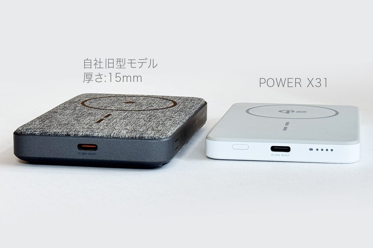 自社の他モデルと比べても、POWER X31が格段に薄くなっていることはひと目でわかります。