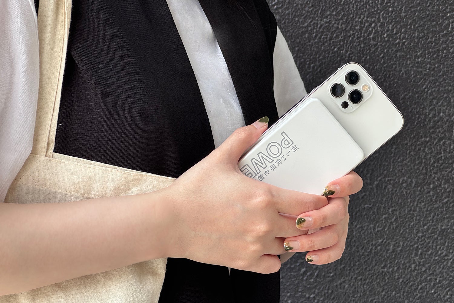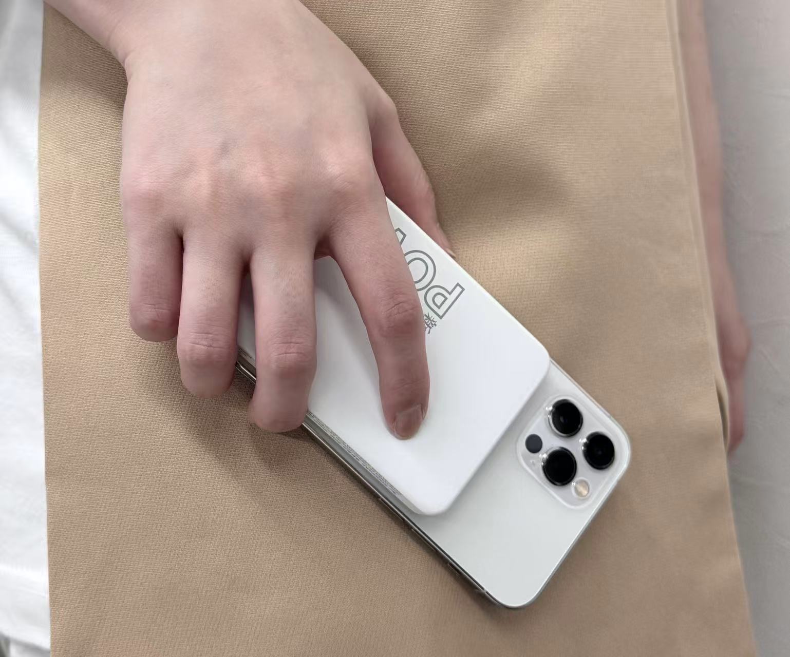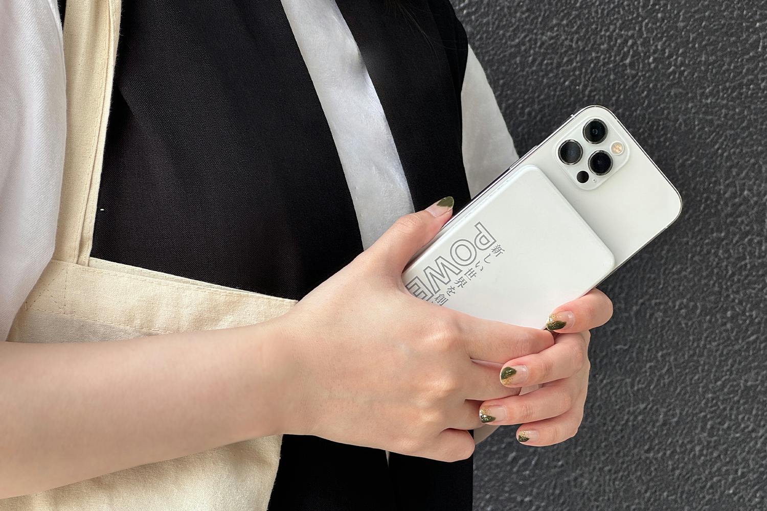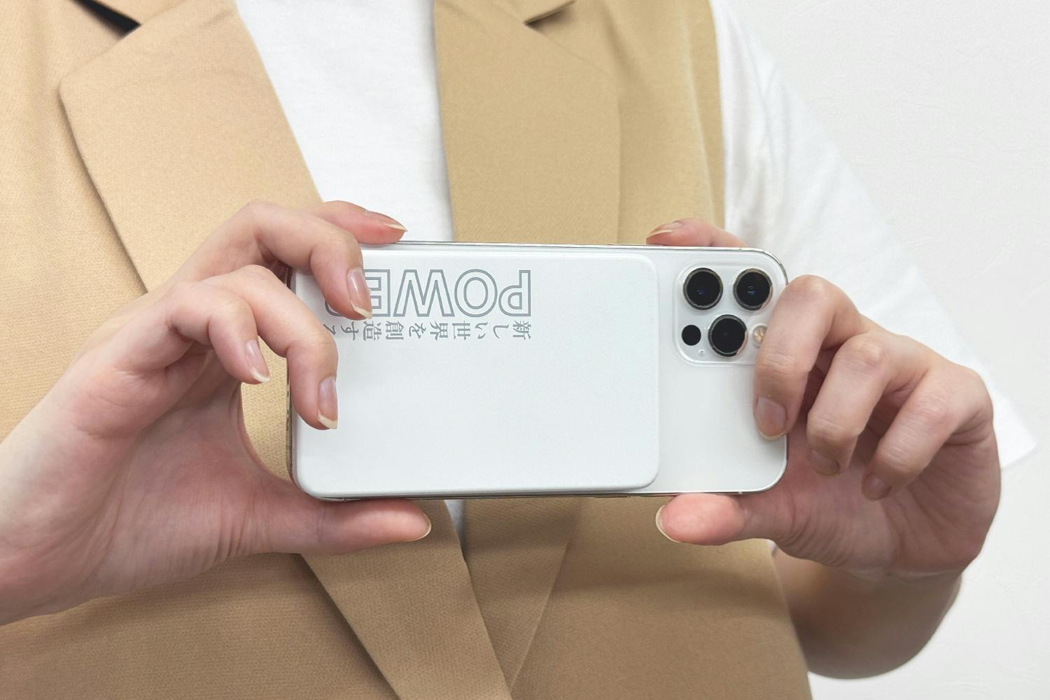 スマホと重ねても手にすっぽり収まるサイズ感なので、スマホ操作しながらワイヤレス充電も快適に行えます。