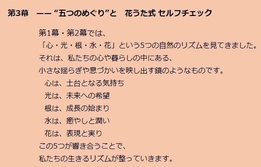 本手帳は、自然の理(ことわり)に基づいたリズムで、心の状態をやさしく見つめ直すことを目的としています。