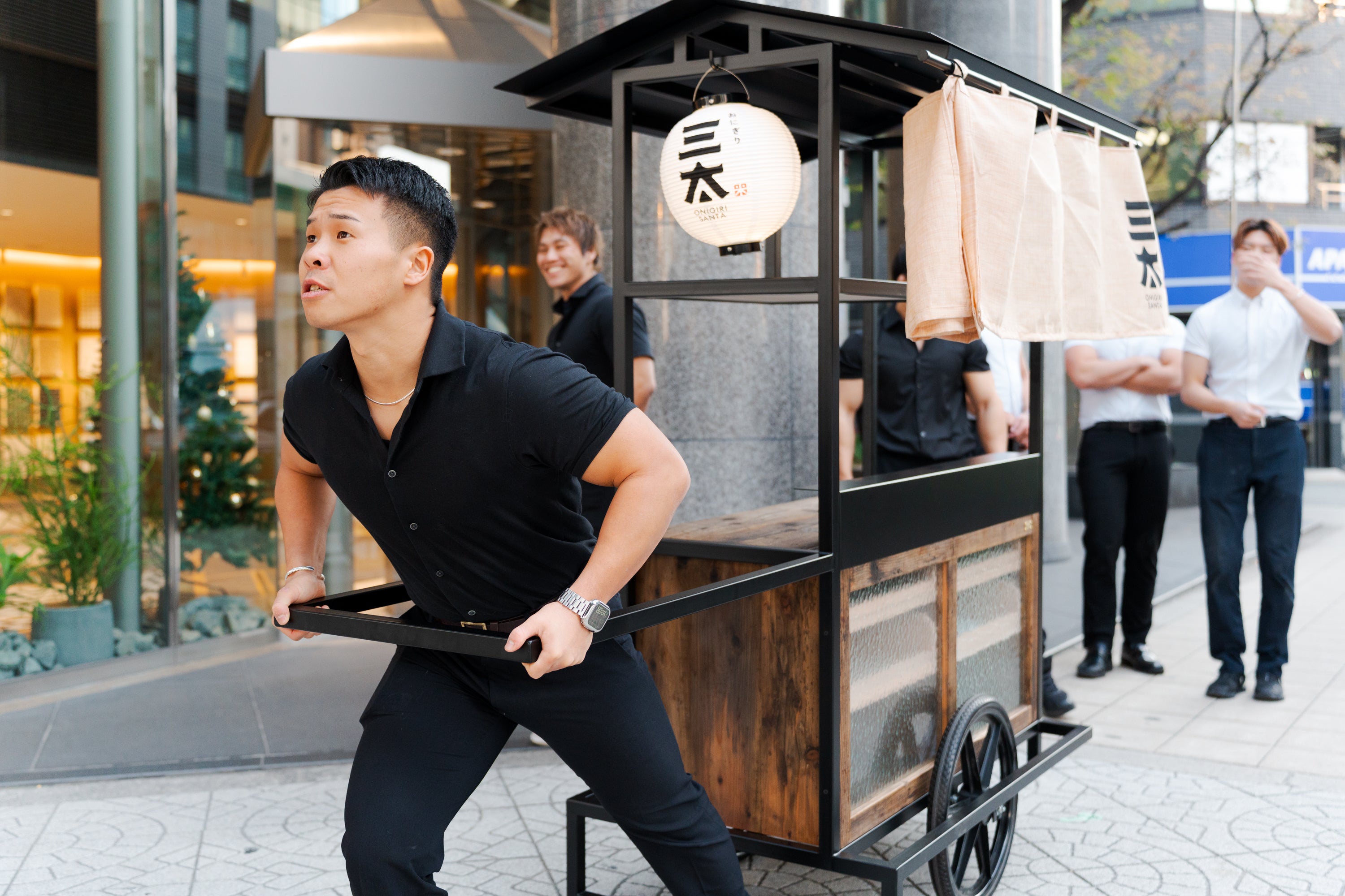 街角にリアカーを引く人影。 鍛え上げられた肉体を持つマッチョ。美しいボディラインを纏った女性。 彼らが手渡すのは、管理栄養士が監修した「本物」のおにぎりです。