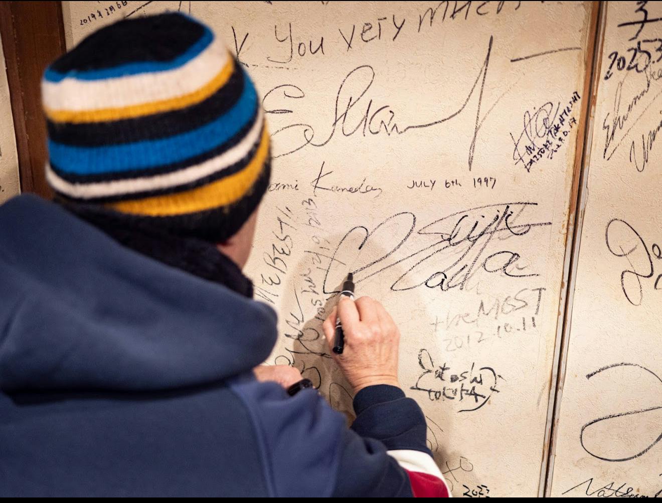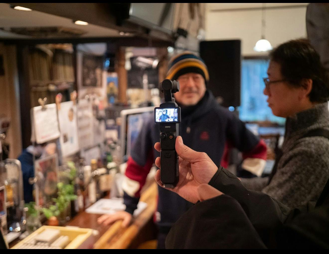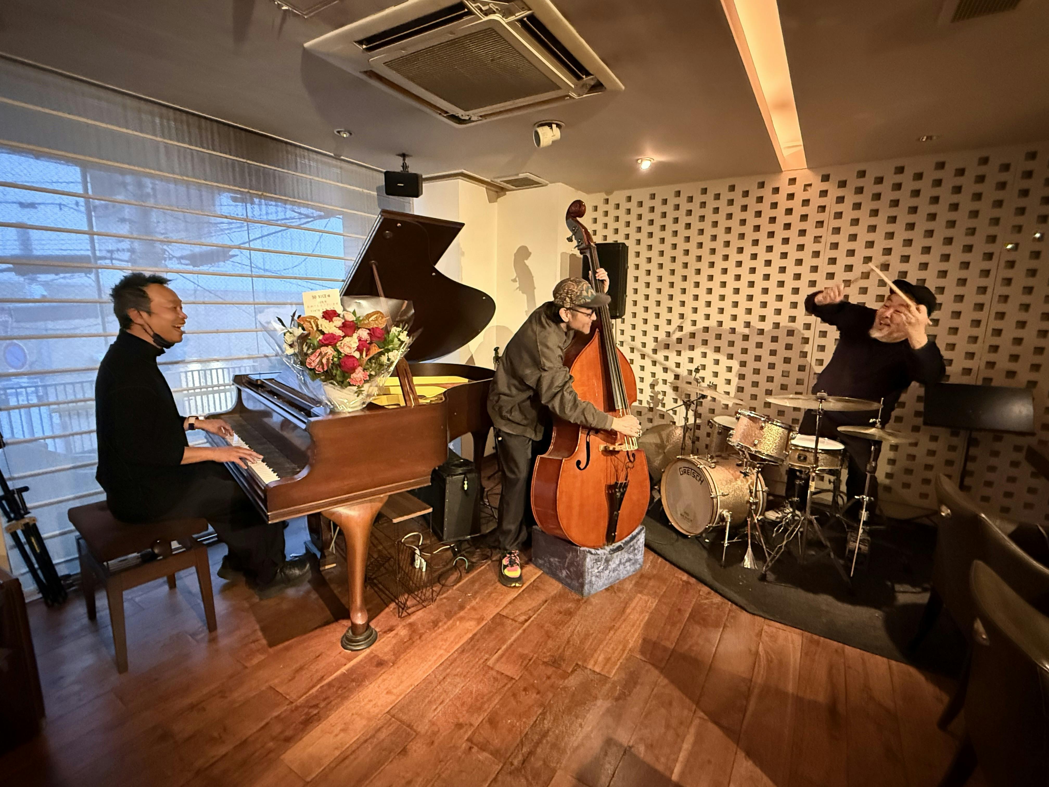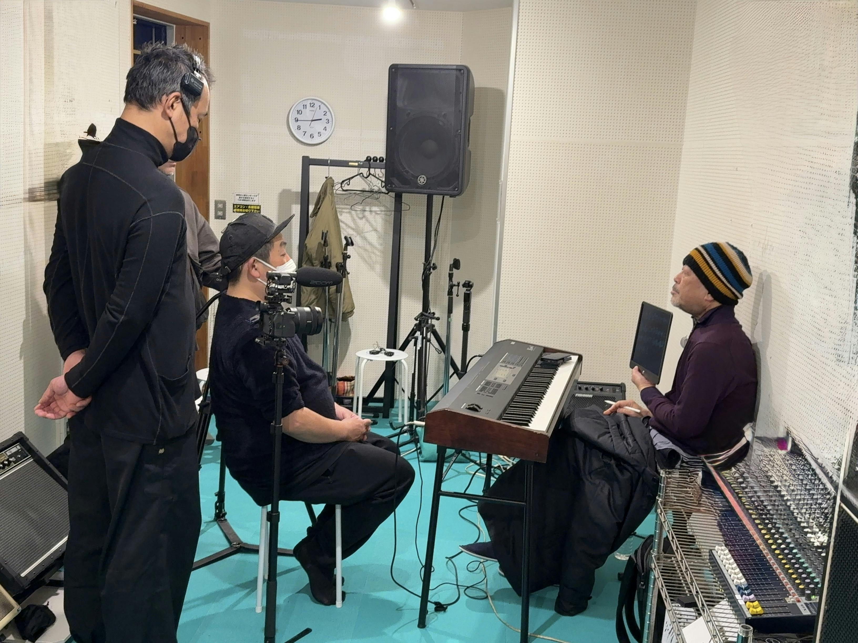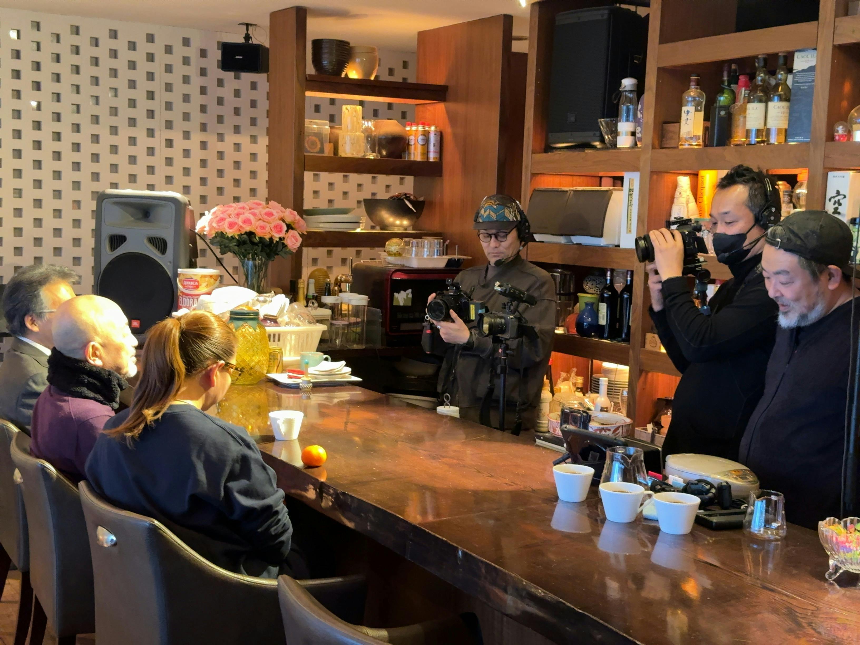 ⤴︎の写真は、お店のママの希望で撮影隊3人がなんちゃってミュージシャンになった貴重な一枚!監督たちノリがいい!!