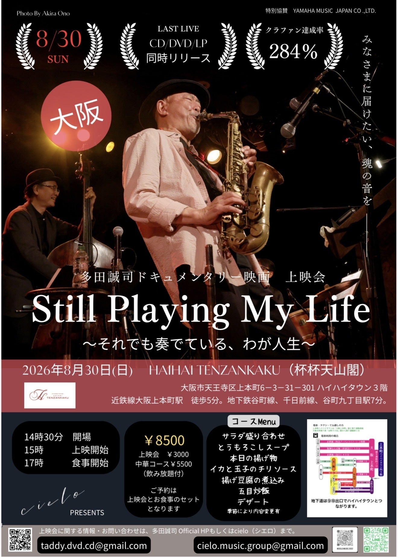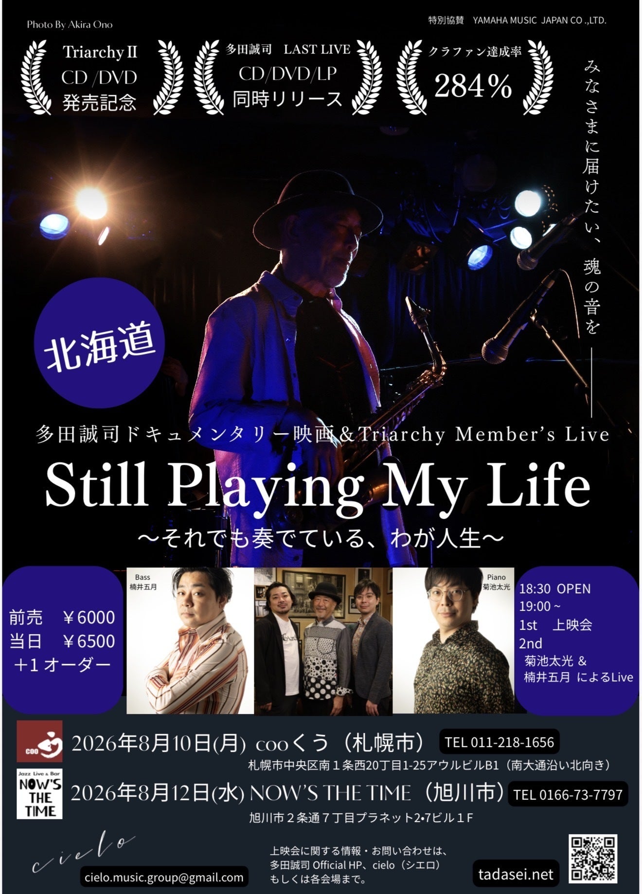 ご予約は、地元関係者、多田誠司HP、cieloまで。