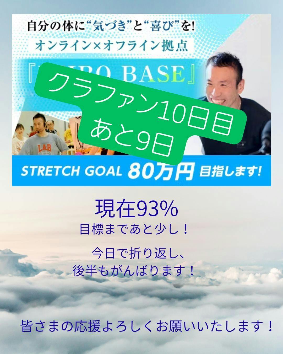 12日目あと7日いよいよ残り1週間というタイミングで!!なんと目標達成することができました!!ご支援くださった皆様、ほんとうにありがとうございます!!!とても嬉しく思います!!残りの期間は、100万円というFINALゴールを目指してやり抜きたいと思います!!最後まで応援よろしくお願いいたします!木原啓貴