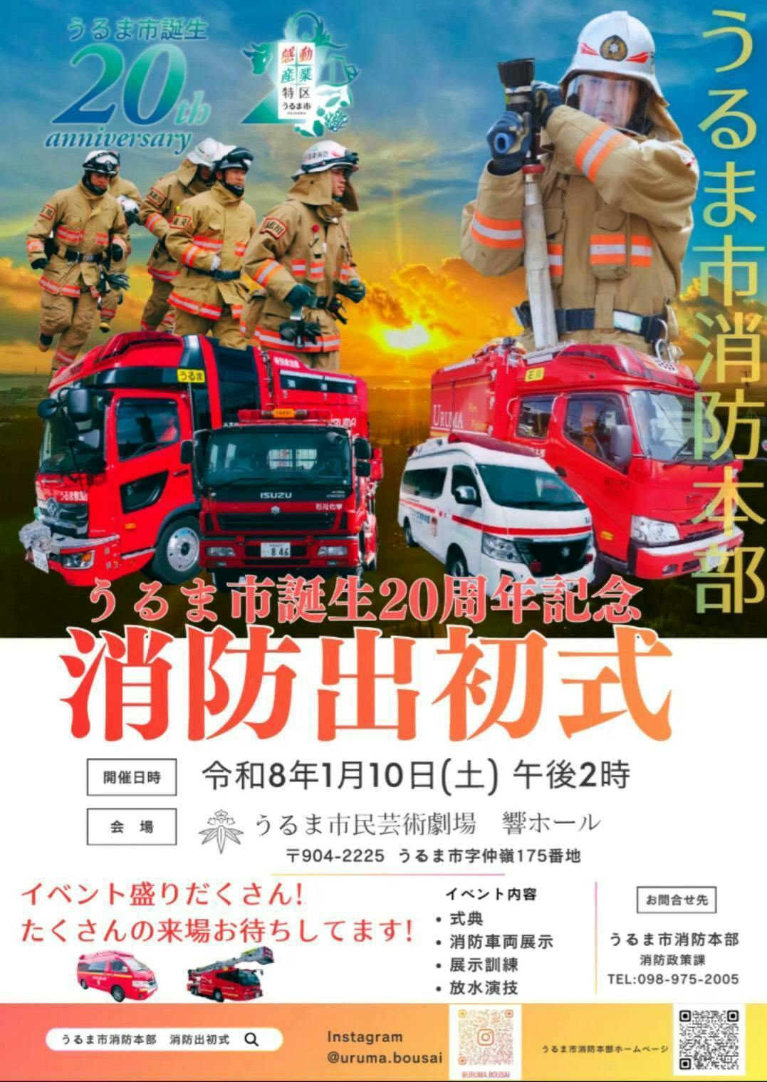 2025/12/28 22:152026年1月10日(土)毎年恒例になっているうるま市消防出初式に来年1月も出演させていただきます。消防隊員・救急隊員の皆さんの展示訓練や放水演技を盛り上げられるよう、かっこいい演技と元気いっぱいのパレード演奏をお届けします。お近くの皆さまはぜひお越しください。 もっと見る