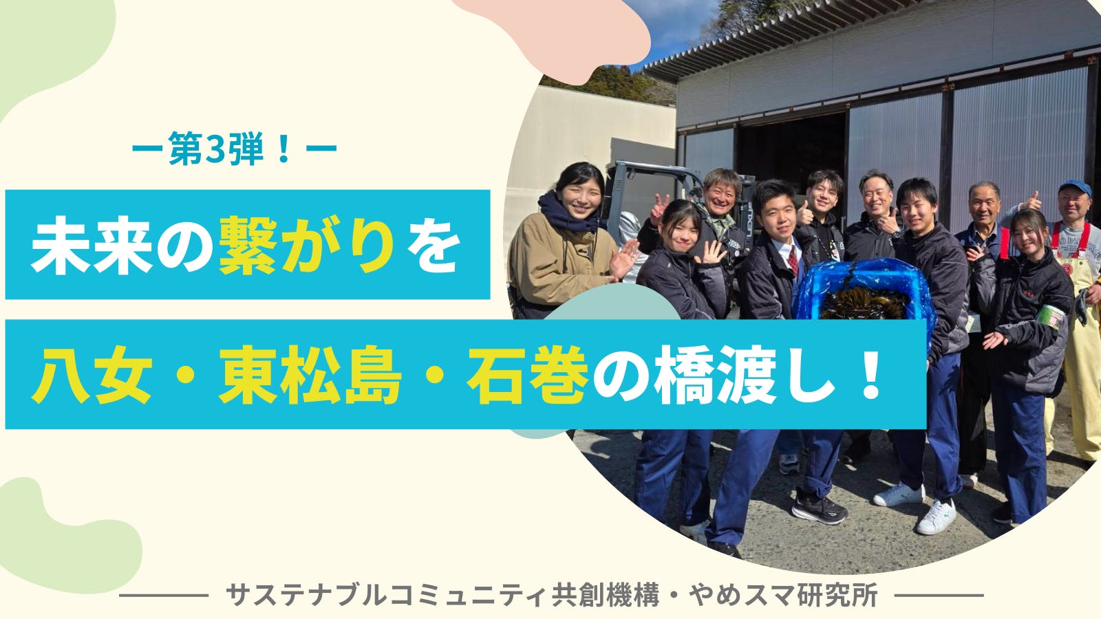 2026年3月に、今までの東北地方での復興支援と地域間交流でできた「人とのつながり」を、次世代に引き継ぎ、若者の無限の可能性につながる選択肢を増やすために、福岡県立八女農業高校、滋賀県立伊香高校の学生を宮城県東松島市、石巻市に連れて行き、地域の方や地域の高校生との交流事業を行います!