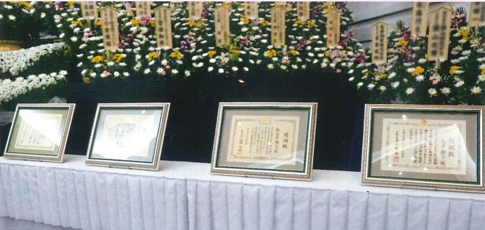 遺族への感謝表明として葬儀に参列し感謝状を贈呈。香典、生花の献呈。寄付金、募金活動。目の衛生に関する研修会