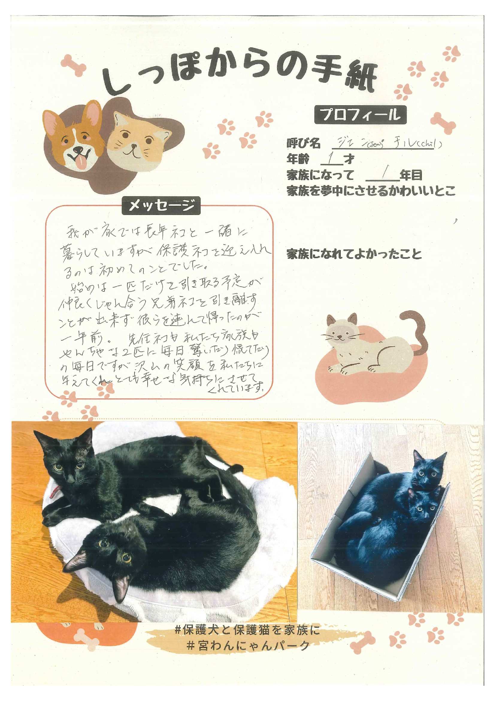 継続して実施することで、動物愛護の意識が広く醸成され、適正飼育の一層の推進、命の大切さやいたわりの心を育て、愛情と敬いの精神を養います。また、飼養に適さないとして殺処分される猫を1頭でも多く命をつなぎ、新たな飼い主への譲渡を進めます。