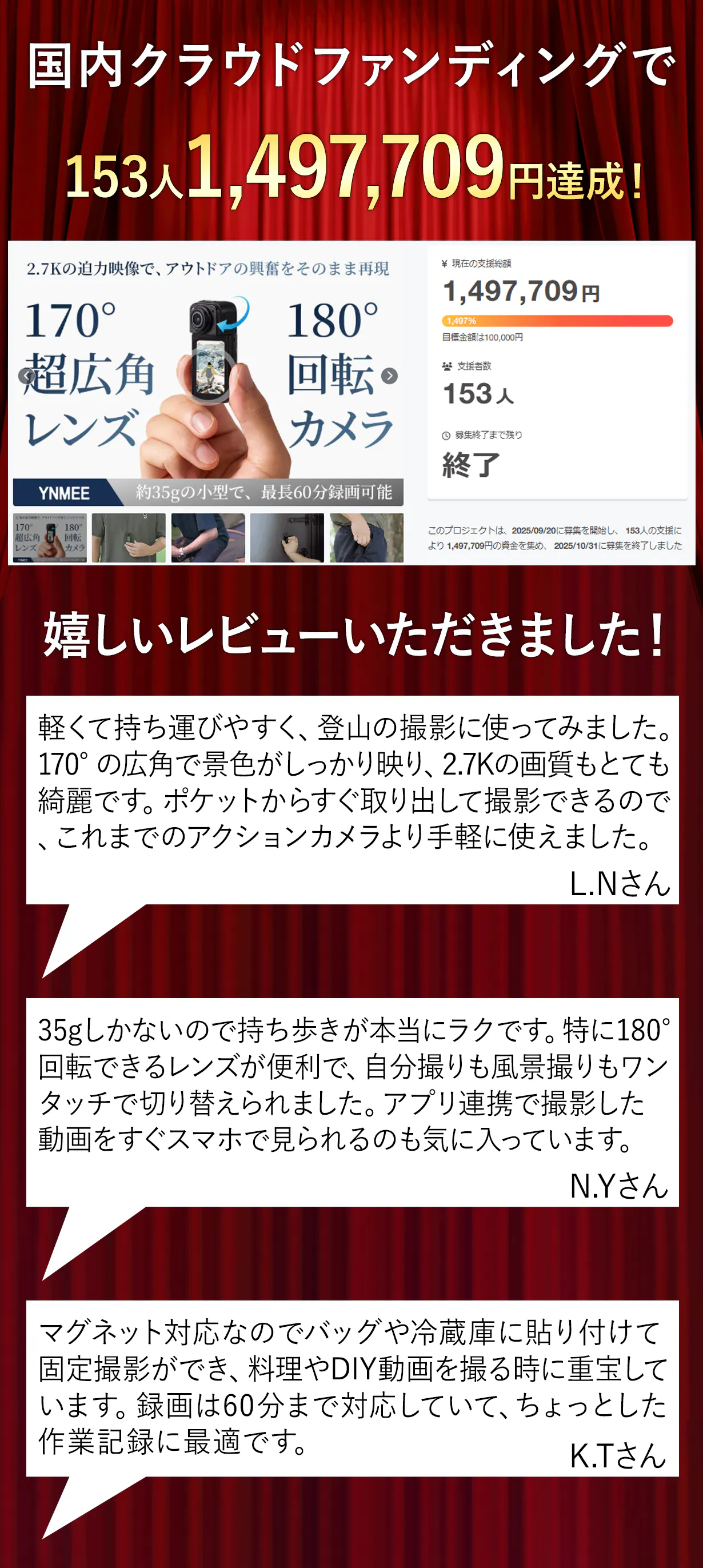 ●その他記載事項:プロジェクトページ、リターン記載欄、共通記載欄(https://camp-fire.jp/legal)をご確認ください。