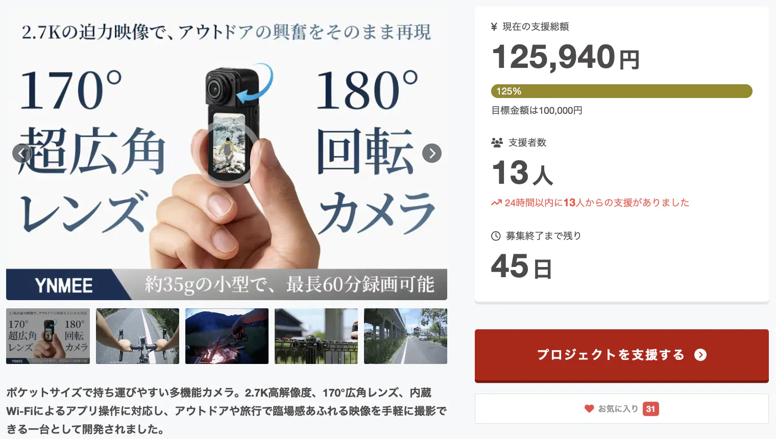 この度は「2.7K高解像度170°広角×180°回転 - ポケットサイズの多機能カメラ」に支援頂き誠にありがとうございます!